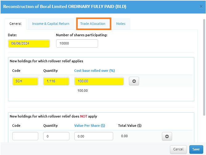 - In the box called ‘New Holdings for which rollover relief applies’, please enter: