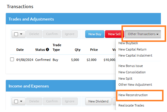 These instructions guide you through recording this event in your Stock Doctor portfolio: