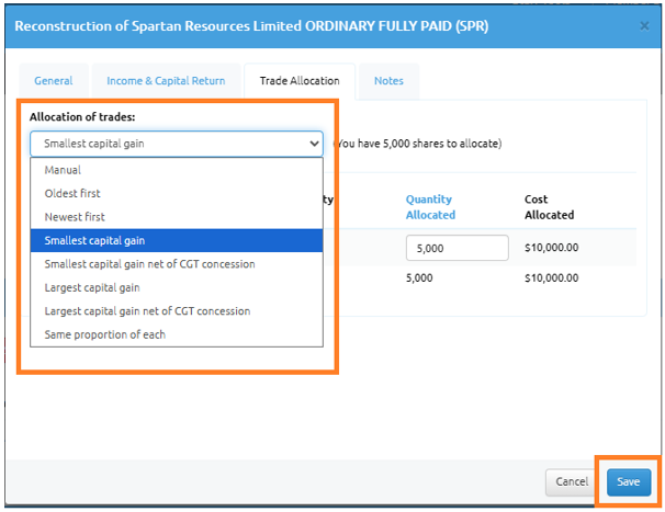 Click “save” and you have now accounted for the Scheme of arrangement for SPR.