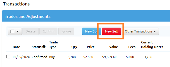 - Click on the ‘New Sell’ button