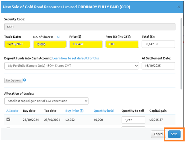 5. Click the ‘Save’ button.
