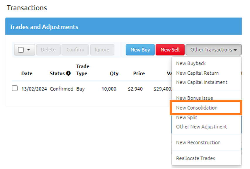 3. In the drop-down menu click on “New Consolidation”