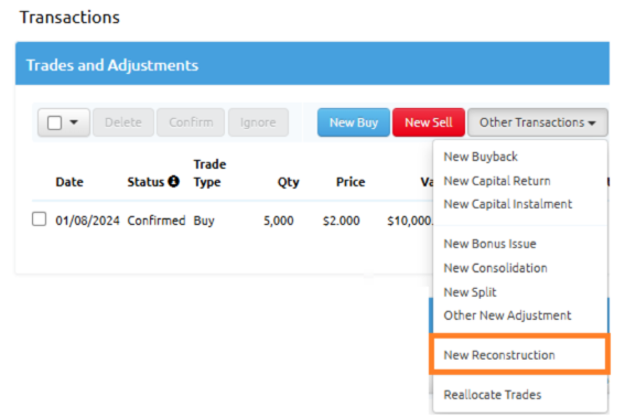 - From the drop-down menu, click on “New Reconstruction”.