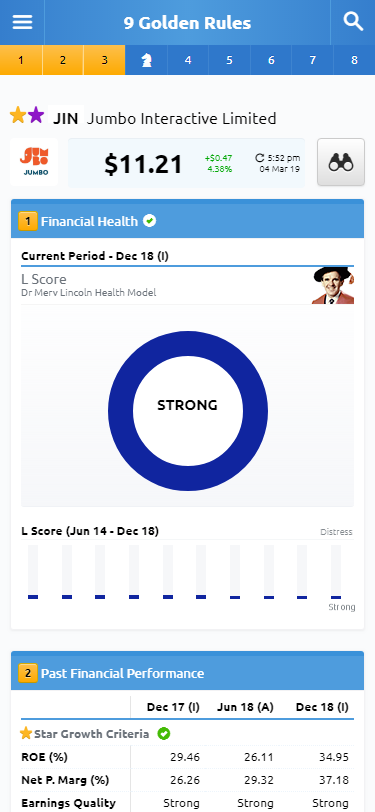 Selecting a company from this list by clicking on its code or name will direct you to the 9 Golden Rules page.