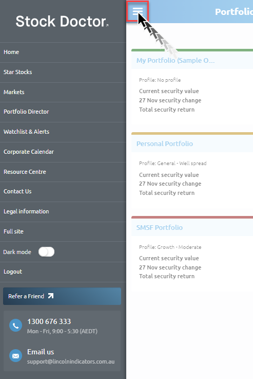 Navigate to the Stock Doctor on your mobile, by typing stockdoctor.com.au in your preferred browser such as google chrome.