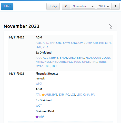 Price Sens. Announcements Section: Informs you of latest price sensitive announcements but also provides you with a quick overview of the relative price reaction for each announcement.