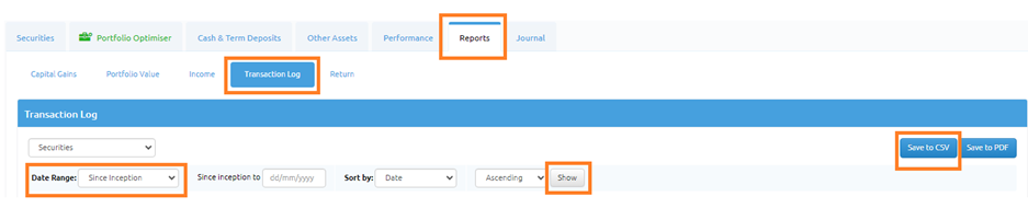 - Please select the “Date Range”, then “Since Inception” and click on the “Show” button to update the data