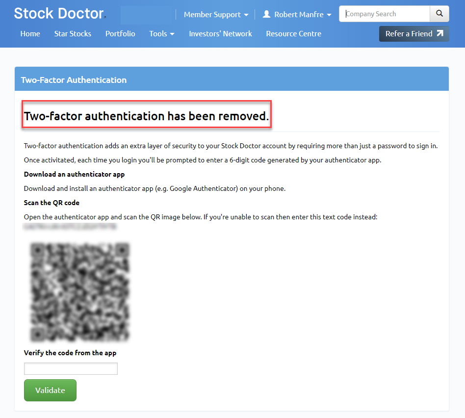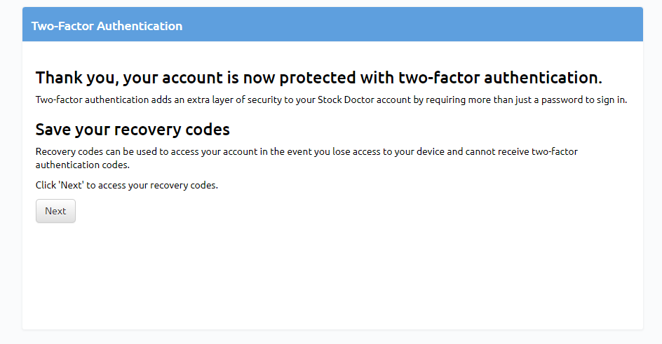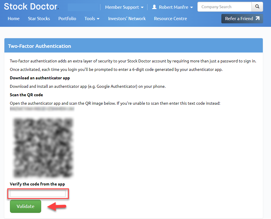 Two-Factor Authentication (2FA) is designed to enhance the security of your Stock Doctor account. This additional layer of protection ensures that your account remains secure, even if your password is compromised.
