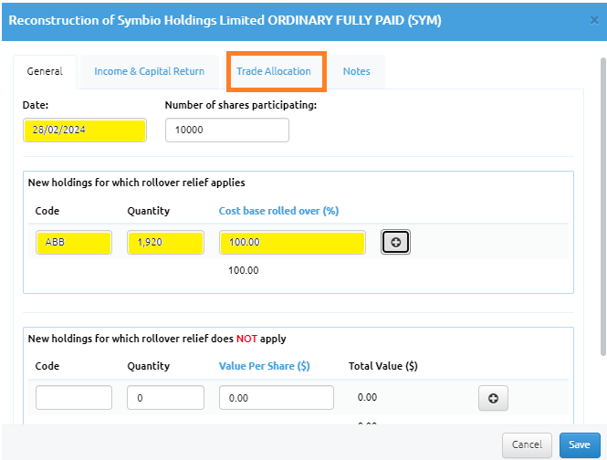 - Quantity: Your SYM multiplied by 0.192 to give you your new ABB holding.