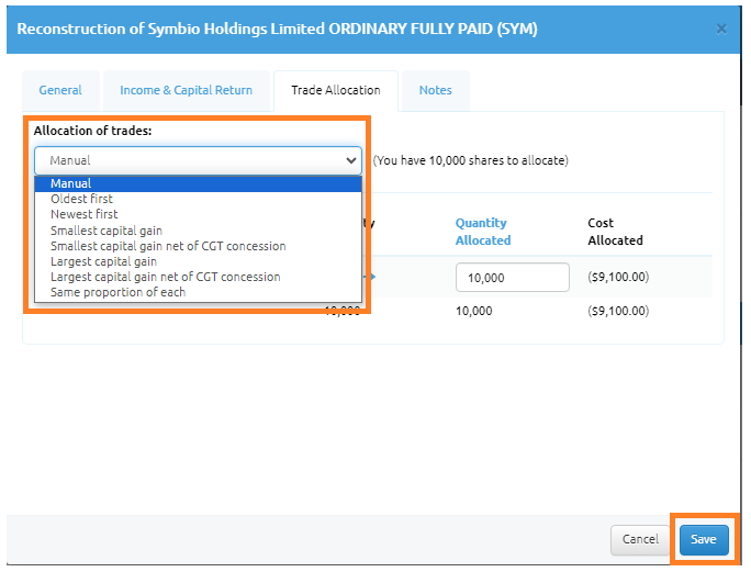 3. Click on the “Trade Allocation” tab and check your "Allocation" of trade method.
